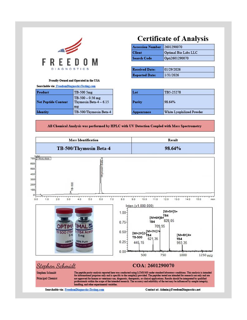 TB-500 is intended for laboratory research use only. Not for human or veterinary consumption. Not approved by the FDA for therapeutic or diagnostic use. All referenced studies are pre-clinical and exploratory.